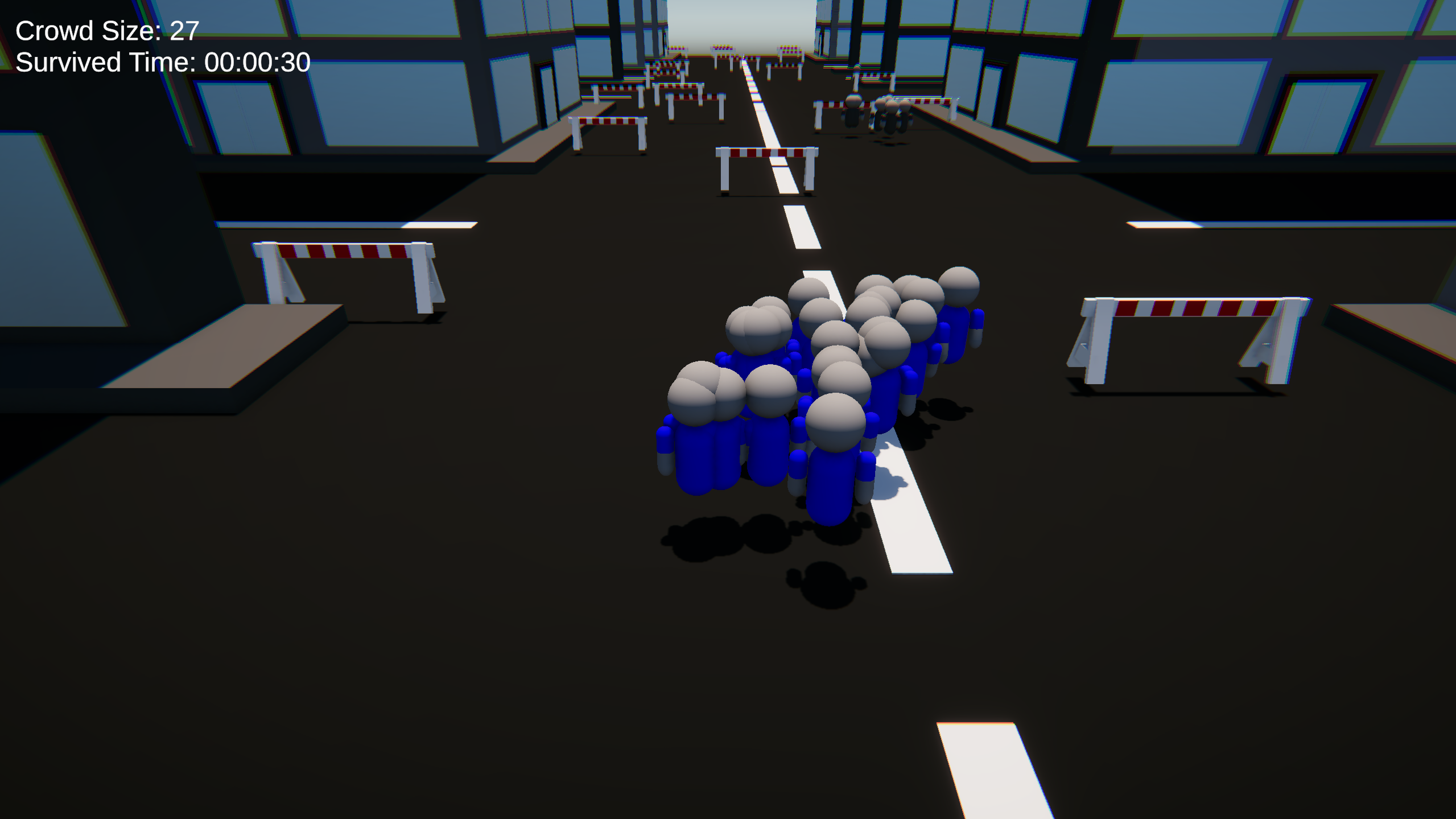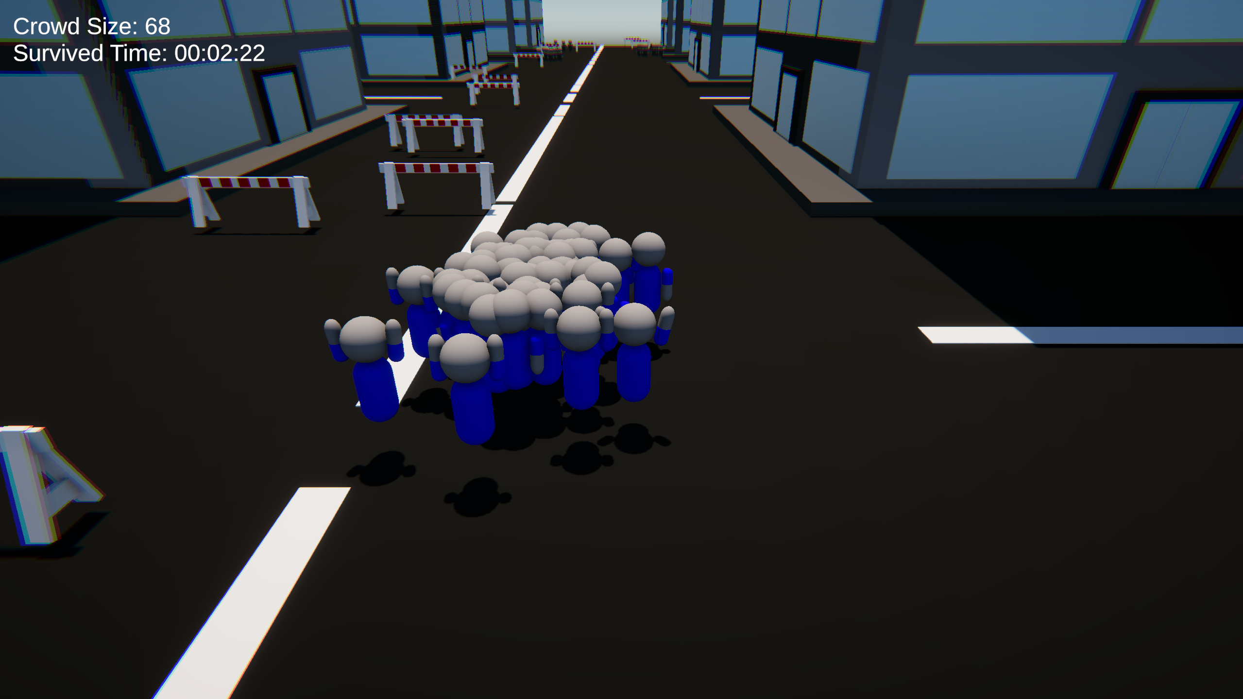 Crowded is an arcade game where you have put TOGETHER as many people as possible by approaching them and avoiding obstacles in the city.